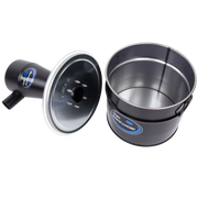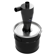 Der DUST COMMANDER X18 ist ein hocheffizientes industrielles Zyklonfilter-Kit, das auf einem robusten 18-Liter-Stahlfass in Schwarz vormontiert ist. Die Trommel ist außen mit einer schwarzen Lackierung geschützt, der Deckel ist verzinkt und das Innere ist mit einem transparenten Lack beschichtet, um die Haltbarkeit und Korrosionsbeständigkeit zu verbessern. Er wurde für Hochleistungsanwendungen entwickelt und bietet eine Filtrationseffizienz von >99 %, wodurch er sich ideal für anspruchsvolle Werkstatt- und Industrieumgebungen eignet.
